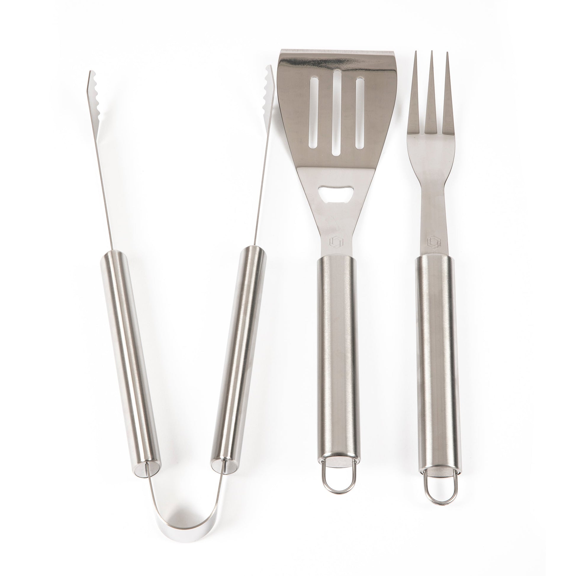 There's no mistaking who's the chef when you wear the BBQ Apron Tote Pro, a bbq set and apron that conveniently folds into an easy-to-carry tote complete with an adjustable shoulder strap. Keep your shirt clean and your hair pristine with the polyester canvas full-size apron and the stylish, dark grey chef's hat. The apron has adjustable criss-cross back straps, easy-close buckles at the waist, and specific pockets for the included grilling accessories: one stainless steel bbq spatula with an integrated bottle opener, one stainless steel bbq fork, and one stainless steel set of tongs. You'll be the (wo)man at your next bbq!