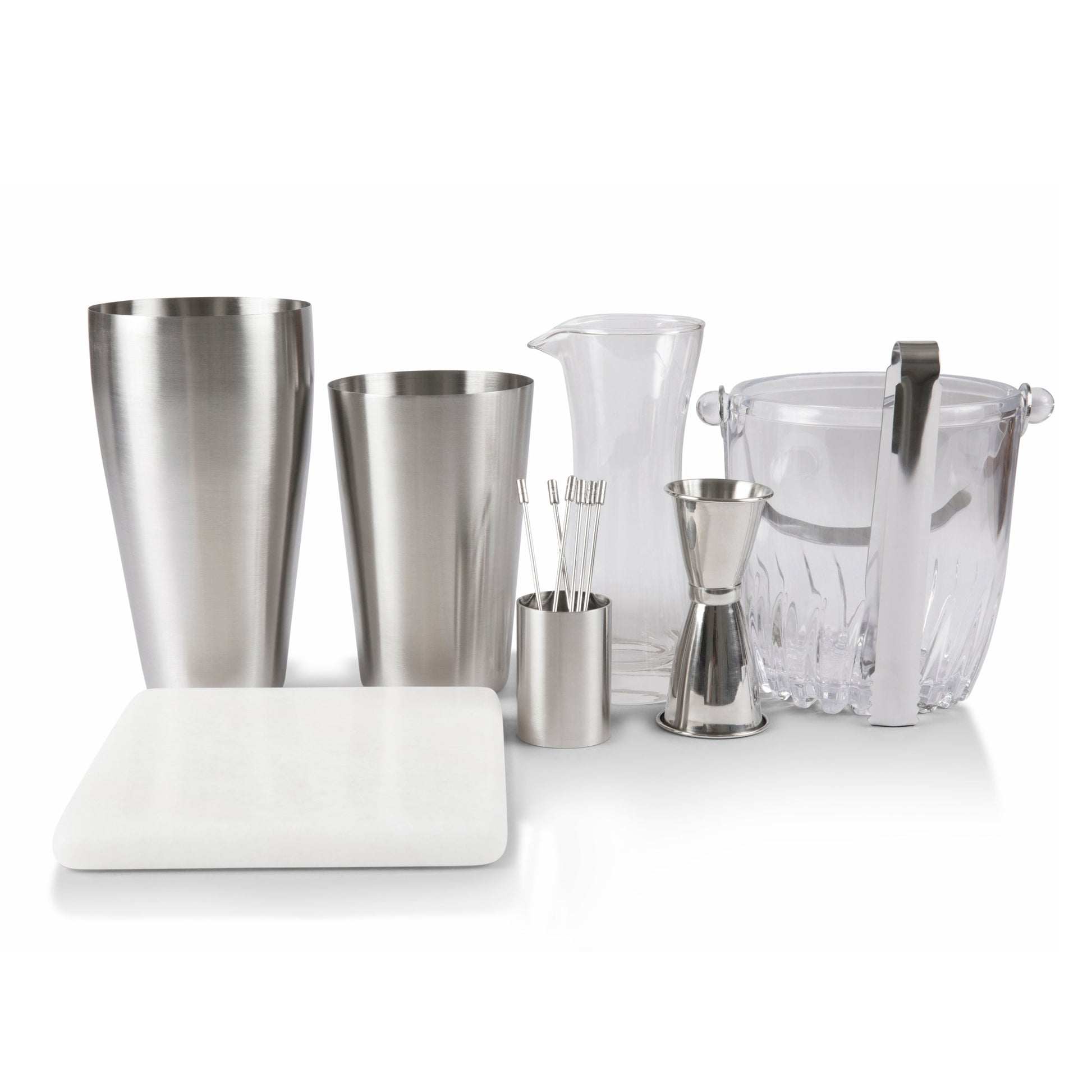 The Kansas City Chiefs Madison Acacia Tabletop Bar Set sits off to the side, dark and handsome. The sleek, mid-century-inspired lines and cherry-stained acacia wood have already received more than a few batted eyelashes and breathy whispers. At happy hour, your friends swoon and gasp as you open the doors, pull out the tray, and get to mixing with the 19 stainless steel bar tools: six cocktail sticks, one cocktail stick caddy, one hawthorne strainer, tongs, one bar spoon, one double-sided jigger, one muddler with plastic head, one corkscrew, one two-piece shaker, one paring knife, one bottle opener, one glass ice bucket with stainless steel handle, one mixing glass with pour spout, and one marble cutting board. Just like that, this iconic, all-in-one bartender kit has become the conversation hub. Now they're batting their eyelashes at you.