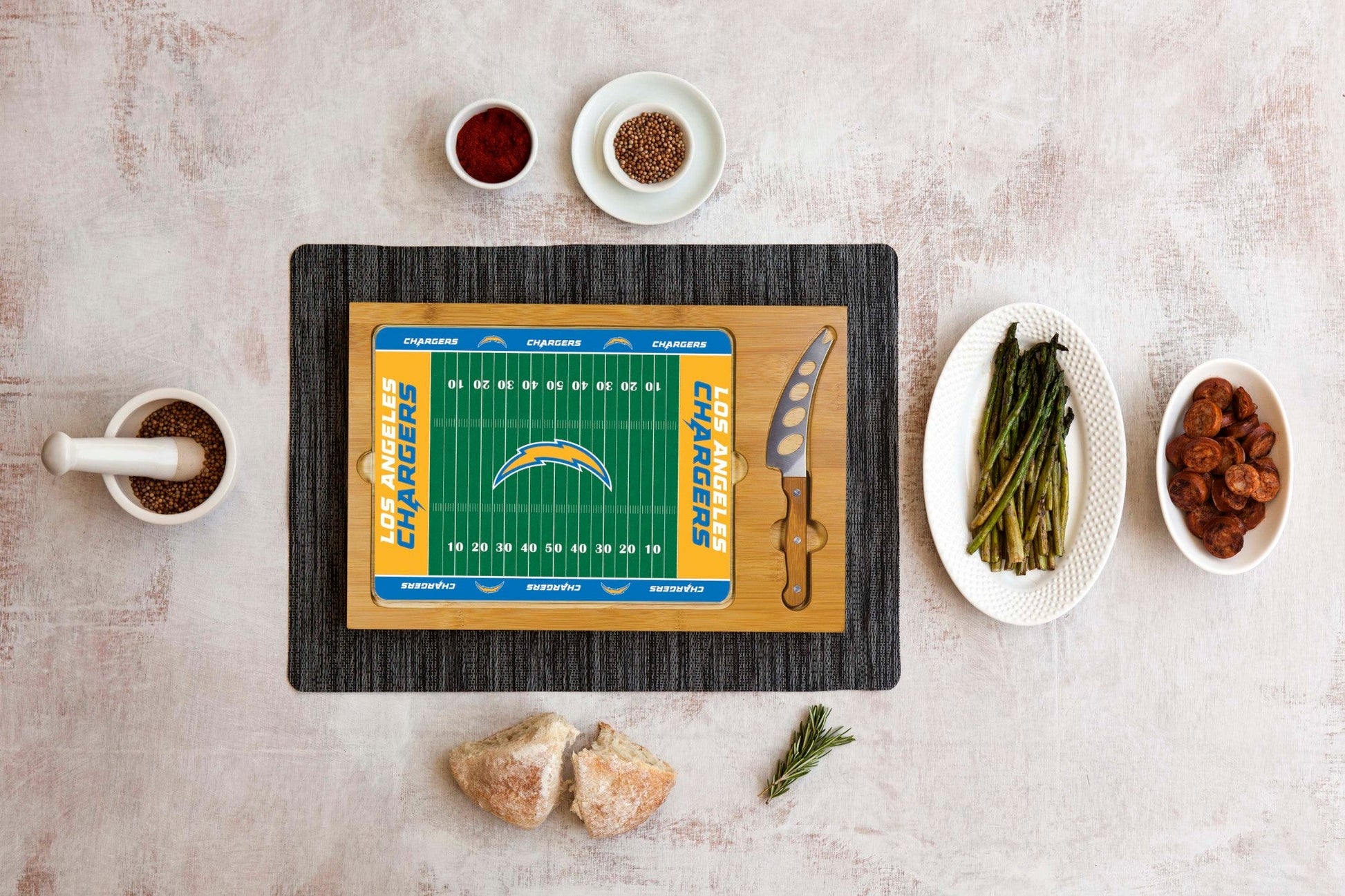 Los Angeles Chargers Football Field - Icon Glass Top Cutting Board & Knife Set